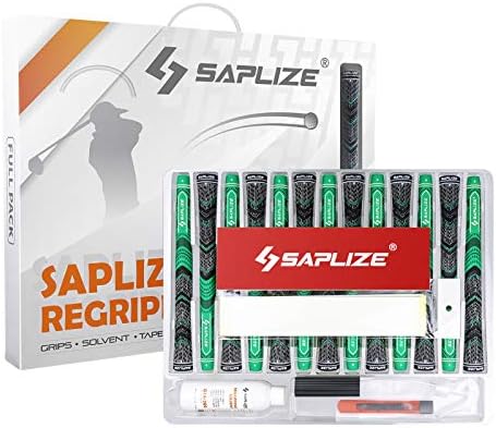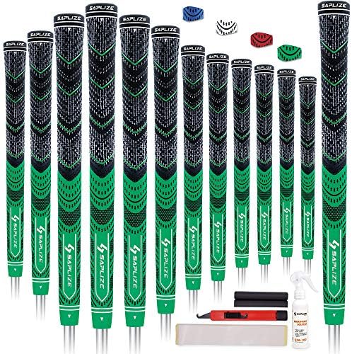 SAPLIZE Golf Grips Standard/Midsize Set of 13 with 15 Tapes or 13 Grips with Complete Regripping Kit All Weather Compound Hybrid Rubber Golf Club Grips