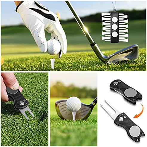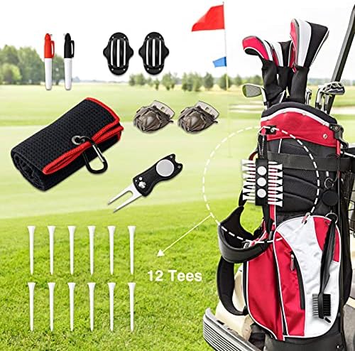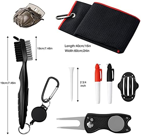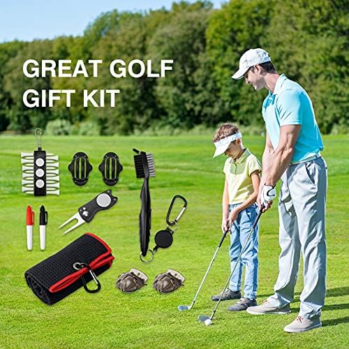 Searching Roads Golf Accessories for Men,Include Golf Towel, Divot Repair Tool, Golf Club Brush, Golf Ball Marker,Golf Marking Pen and Golf Tee Holder