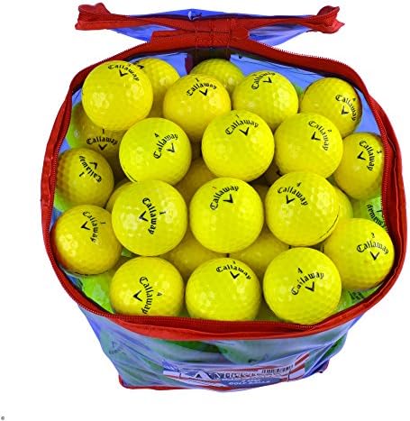 Second Chance premium used callaway Yellow mix golf balls in grade a quality ball. These 100% genuine recycled lake balls are not refurbished or refinished. Second Chance rigorous cleaning and selection process ensures exceptional quality. Handpicked and meticulously inspected by experienced golf ball graders. Handy durable double stitched carry bag. Great for storage and transporting your golf balls.