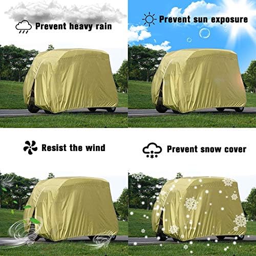 SING F LTD 4 Passenger Golf Cart Cover Waterproof Sunproof Club 112 Inch Height 210D Polyester Fabric Durable Taupe