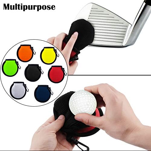 Skylety 7 Pieces Portable Golf Ball Pocket Golf Ball Cleaner Pouch Golf Ball Washer Bag with Plastic Clips, 7 Colors