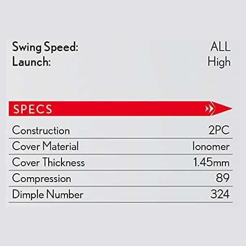 Highly resilient ionomer cover provides longer drives and exceptional cut proof durability.