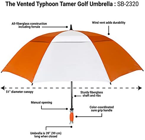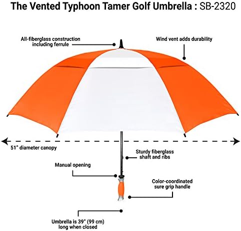 STROMBERGBRAND UMBRELLAS Vented Typhoon Tamer 62″ Windproof Waterproof PGA Professional Quality Ultimate Portable Golfers Golf Umbrella for Men and Women, Orange/White, One Size