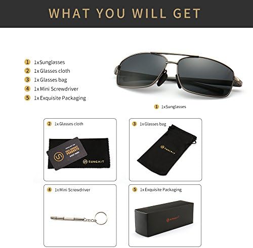 SUNGAIT Ultra Lightweight Rectangular Polarized Sunglasses UV400 Protection
