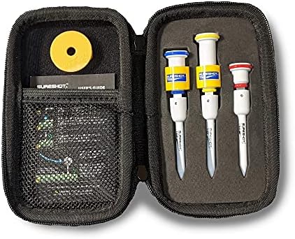 A standard bundle with SureShot Tee”s in Size 1, Size 2, and Size 3. Tees are packaged in a high quality, water-resistant, EVA zipper case. This package also includes a SureShot Tee Anchor Disc which gives you a wider support footprint to stabilize the tee even on a rough tee box. Size 2 and Size 3 come with Impact Guards pre-installed. Impact Guard protects the tee against any unintentional impact from an uncontrolled swing. Impact Guard has a bright yellow color for an enhanced visibility of the tee.