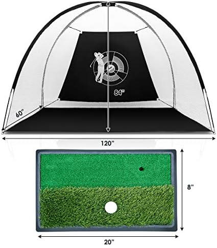 Tangkula 10FT Golf Practice Net with with Turf Mat & 24 Golf Balls, Indoor Outdoor Golf Training Net with Target for Hitting Cage Chipping, Golf Training Net with 4 Stakes & Carry Bag