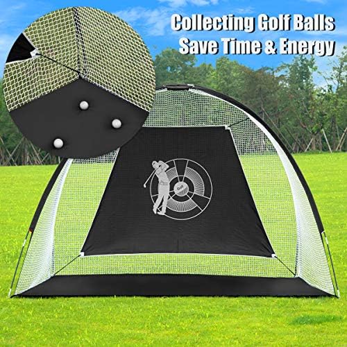 Easy to Collect: The golf practice set comes with 210D polyester floor and three sides of mesh, all shots will be collected in the cage, polyester floor collects golf balls for easy pick up.