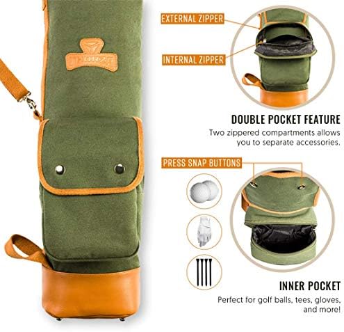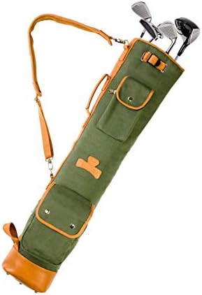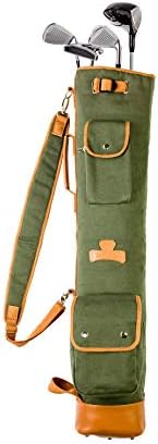 Thorza Sunday Golf Bag for Men and Women, Vintage Canvas and Leather, Stores Balls, Tees, and Clubs for 18 Holes, Zippered Pockets, Lightweight with Carry Handle and Shoulder Strap