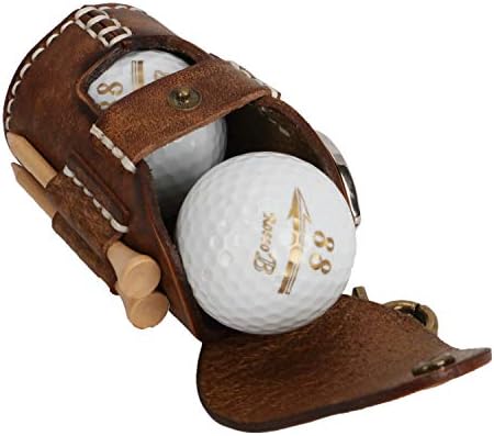 Tourbon Brown Leather Belt Golf Ball Pouch with Golf Tees Holder vintage design with fine workmanship , can be clipped on to the outside of your golf bag or even on to the belt of your pants.
