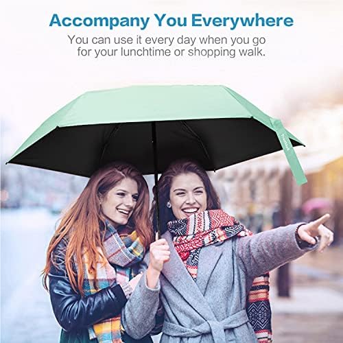 COMPACT & LIGHTWEIGHT: The handle is comfortable to hold. The umbrella has reinforced fiberglass ribs for support; It is pretty, but sturdy enough to handle rain and some wind. The size and weight are perfect for travel and fits in your small purse or backpack. You are in need of a small, lightweight umbrella for daily commuting to and from work, this umbrella is a best choice.