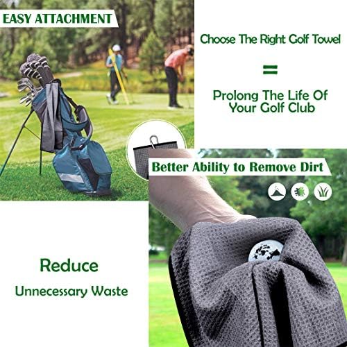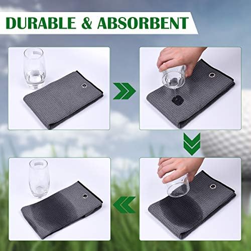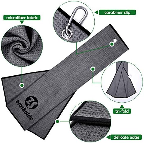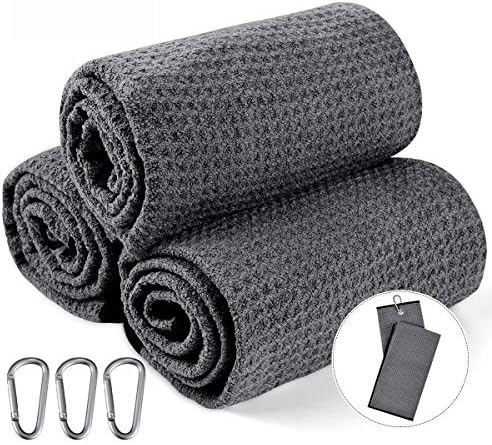 Tri-fold Microfiber Golf Towel(3 Pack),16″ X 24″with Carabiner Clip |Leaves lint and Streak Free|Not Scratch Paints Surfaces| Antistatic |Easy to Clean|Durable, Super Absorbent, Fast Drying