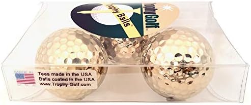 TROPHY BALLs are brilliant metallic real golf balls with a thin metallic coating over the entire balls surface. This unique and proprietary coating is applied in the United States over genuine Nike balls. The silver, gold, and copper/bronze coatings make the dimpled balls look like a disco ball that completely stands out in a crowd of white and colored balls. Sets of 3 TROPHY BALLs are packed in clear durable tubes with low-profile black caps for a stunning gift presentation. The balls are completely playable as regulation balls. The coating is tightly bonded to the ball and won’t scratch off with a fingernail, but it will break down with the impact of a metal golf club. Putting strokes generally do not affect the surface finish of the ball.