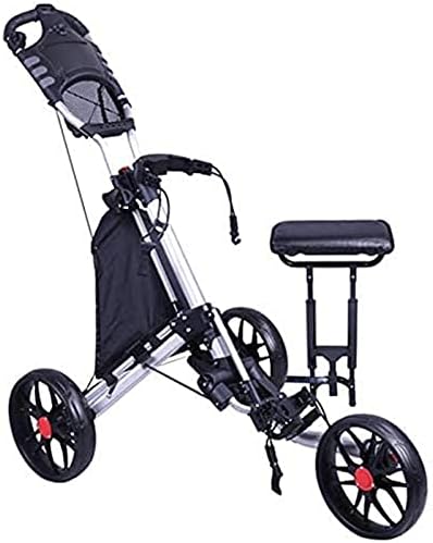 TUHFG Golf Push Cart Trolley Golf Golf Cart Swivel Foldable 3 Wheel Push Pull Cart Golf with Seat Scoreboard Bag Golf Push Cart