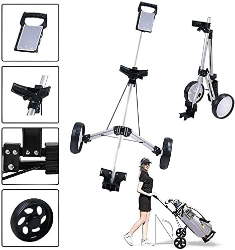 TUHFG Golf Push Cart Trolley Golf Portable Golf Collapsible Fast Open and Close 2-Wheel Golf Push Cart Golf Luggage Check Carrier Cart Swivel Golf Cart with Scorecard (Color : Black) (Color : Black)