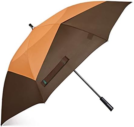 LARGE GOLF UMBRELLA: 60” arc, 51” diameter is big enough to provide protection for 1~3 people, perfect companion for a family outdoors activities; umbrella stands 38.8” and comes with a matching sleeve for convenient storage.