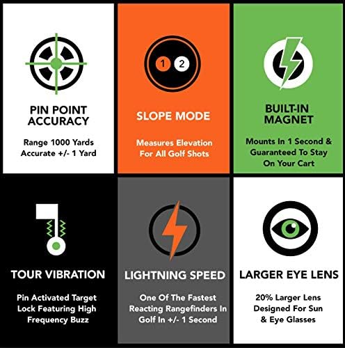 ⛳ SUPREMELY ACCURATE WITH PIN VIBRATION TECHNOLOGY: Accurate to .5 – 1.0 Yards. We Have Personally Tested to Golf Flags With Pin-Seeker Lock at 1000+ Yards, to Trees and Buildings Going From 600 to 1000 Yards in Measurement. High Definition Lens With 6X Magnification and larger lens for eyeglasses and sunglasses. Pin Vibration Technology Allows for a Pin Activated Target Lock Which Features a High Frequency Buzz Vibration.