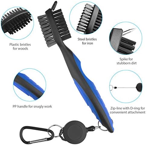 VISATOR Golf Club Brush Groove Cleaner with 2FT Retractable Zip-line Aluminum Carabiner Cleaning Tools,Golf Beads Count Stroke Score Counter, Simple and Effective Scoring Tool,Cleaner for Club & Shoes