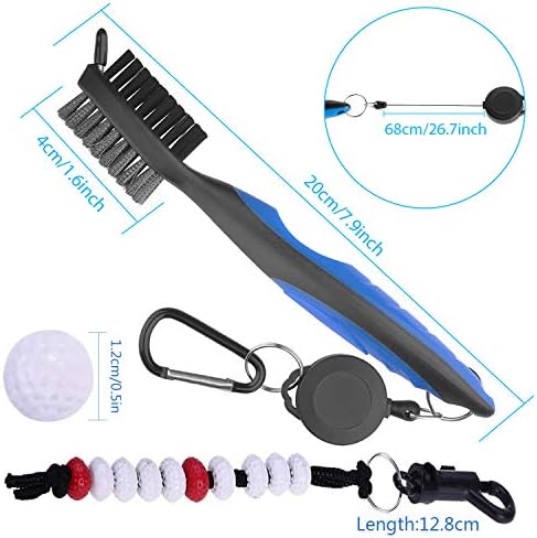 【Newly Upgraded】The package included: Golf Club Brush Groove Cleaner with 2 Ft Retractable Zip-line Carabiner and Golf Beads Count Stroke Score Counter 12.8mm,Lightweight,More compact and convenient,durable clip for easy attachment golf bags or belt,100% BRANG NEW