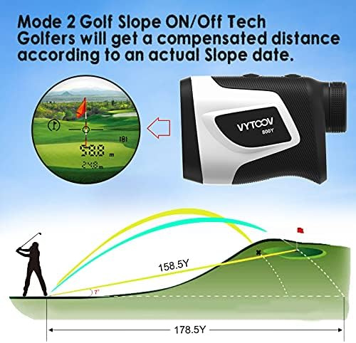 4 RANGING MODES: VYTOOV Golf Range finders with 4 Modes; Mode 1(Tournament Legal) Continuous Scan, Flag-Lock; Mode 2(Slope Tech + Angle + Flag-lock + Jolt Tech), Mode 3: Horizontal Distance Measurement + Vertical Distance Mearsurement, Mode 4:Speed Mode.This golf rangefinder adopts advanced slope tech suitable for Golf. Best Gift for Golfer.
