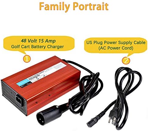 48V 15A battery chargers with 3-Pin round connector replacement for club car golf carts. Plug and forget 3-stage smart charging technology.