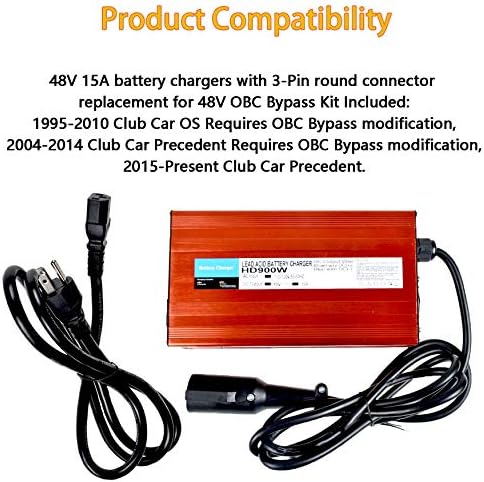 Replacement for OBC Bypass Kit Included: Replacement for 1995-2010 48V club car DS, requires OBC bypass modification; Replacement for 2004-2014 48V club car precedent, requires OBC bypass modification; Replacement for 2015-Present 48V Club Car Precedent.