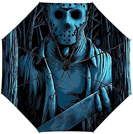 Whsahfasfhiy Friday The 13th Jason Voorhees Travel Folding Umbrellas for rain Auto Open Close Mini Umbrella for Backpack Waterproof Windproof Portable Sunlight Protection Golf Umbrellas