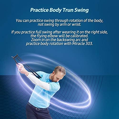 BODY TURN SWING PRACTICE – With the Miracle 303 swing training aid, you can practice swing through body rotation, not through arm swing through body rotation. Use this to expand your backswing arc and practice torso rotation with flying elbow correction.