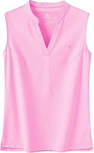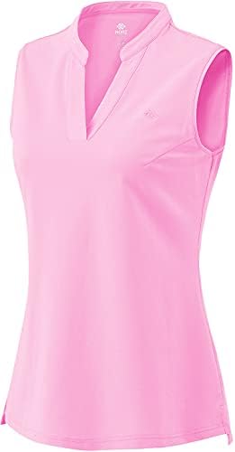 Womens sleeveless golf shirts well made of high quality soft fabric, moisture wicking and breathable for a full range of motion, lightweight and skin touch, make you feel cool and fresh all day.