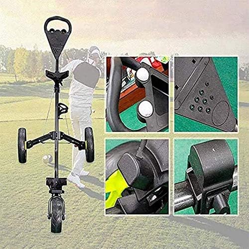 ♥ Golf Trolley Accessories : It comes with an upgraded handle unit, bundling in a drinks holder, ball holders, scorecard holder, and extra wide handle for grip. This collapsible cart with wheels is built with a super strong, lightweight, and sturdy aluminum frame that makes the golf pull cart easily maneuverable. It also has an attractive finish that will coordinate with any golf bag. (golf ball and bag Not included).