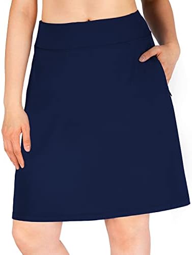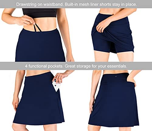 Yogipace Women’s 4 Pockets UV Protection 20″ Modest Knee Length Skirt Athletic Running Golf Tennis Skort Zippered Pockets