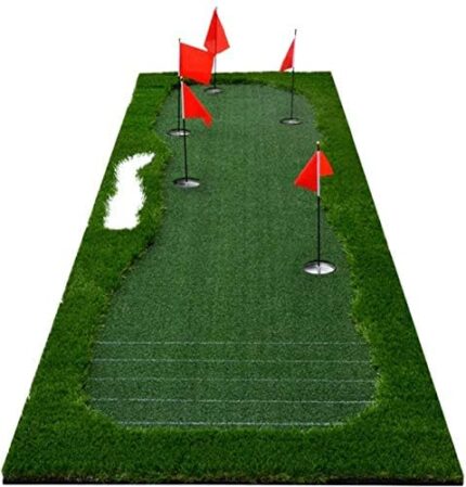 Golf Putting Mat Material: nylon grass + EVA bottom plate, heavy duty non skid rubber bottom design,super grip that keeps mat from moving.